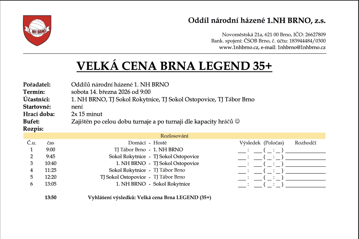 ZVEME VÁS NA VELKOU CENU BRNA KTERÁ SE BUDE KONAT 14.3.2026